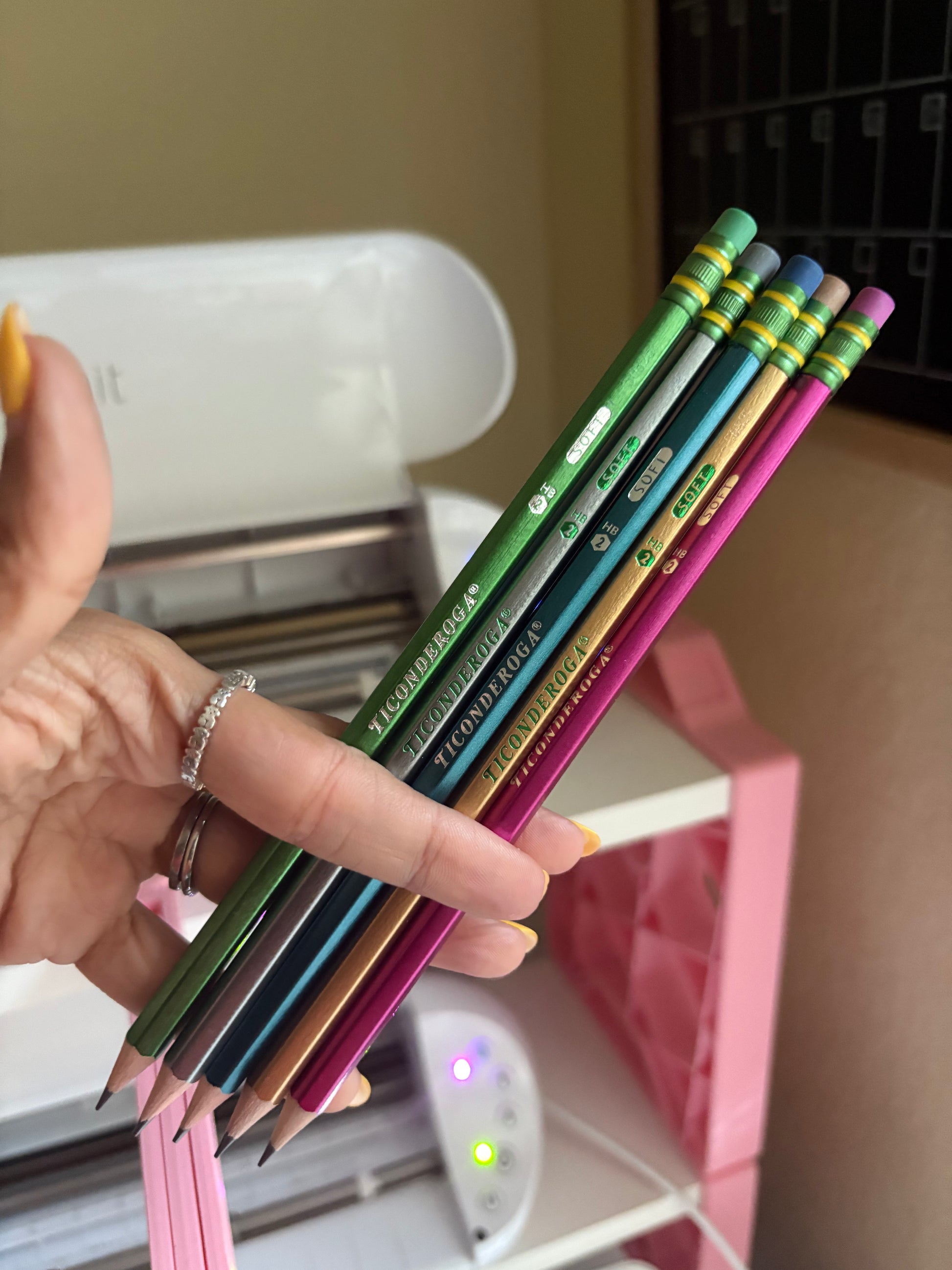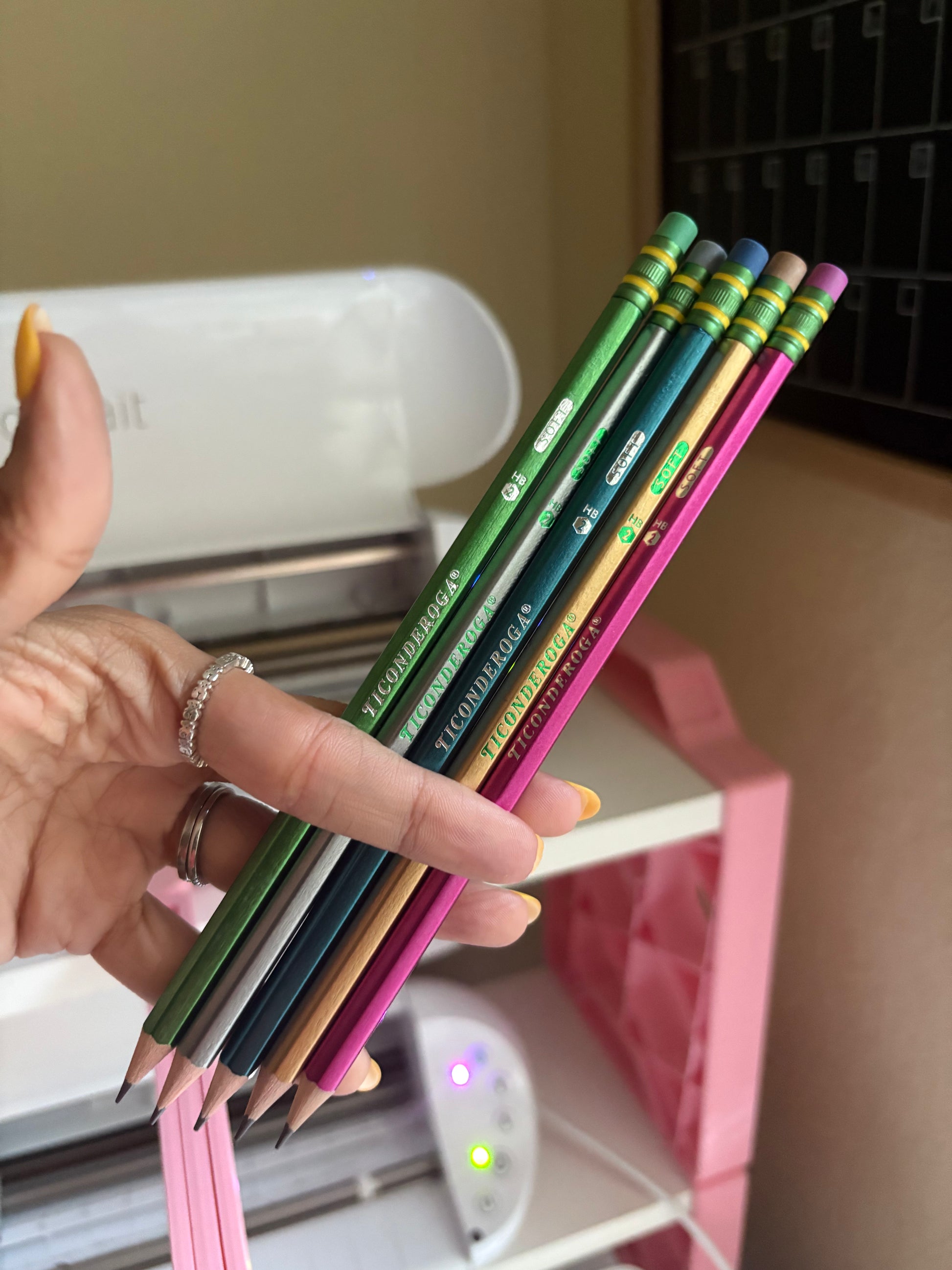 Los lápices vienen ya con punta, vienen en packs de 5 -10 unidades . Son marca Ticonderoga , lápices de alta calidad y los favoritos de las escuelas hoy día. Lápices #2. Puedes colocar: NOMBRE, NOMBRE E INICIAL, NOMBRE Y APELLIDO, UNA FRASE MOTIVACIONAL.