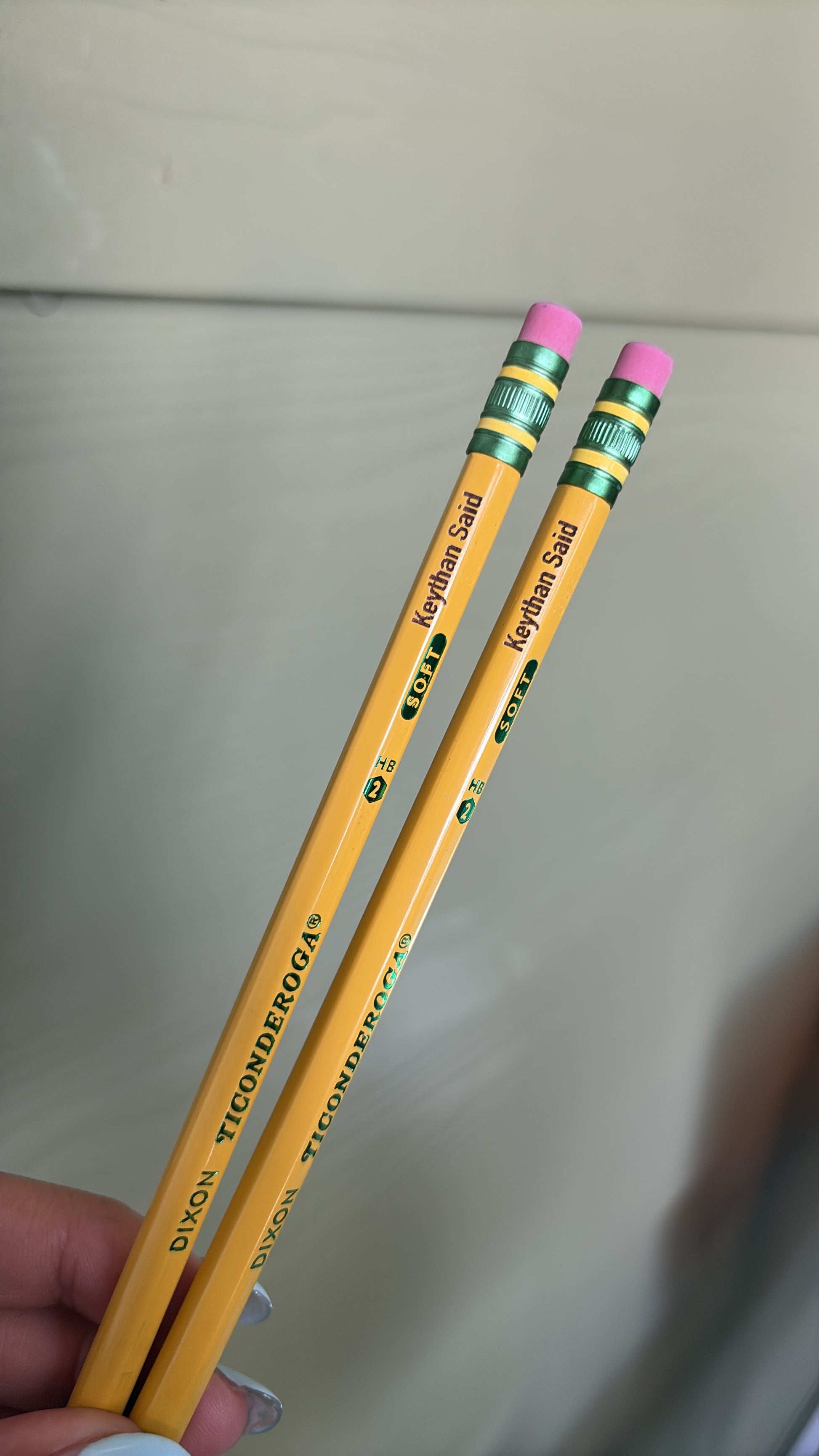 Los lápices vienen ya con punta, puedes elegir entre color: amarillo, pasteles y colores neones. Vienen en packs de 5 -10 unidades . Son marca Ticonderoga , lápices de alta calidad y los favoritos de las escuelas hoy día). Lápices #2. Puedes colocar: NOMBRE, NOMBRE E INICIAL, NOMBRE Y APELLIDO, UNA FRASE MOTIVACIONAL.